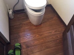 トイレ交換後に隠れていた床の一部をボカシ塗装行いました