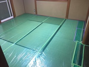 お家ので工事する前にお家の中の養生の作業を行いました。