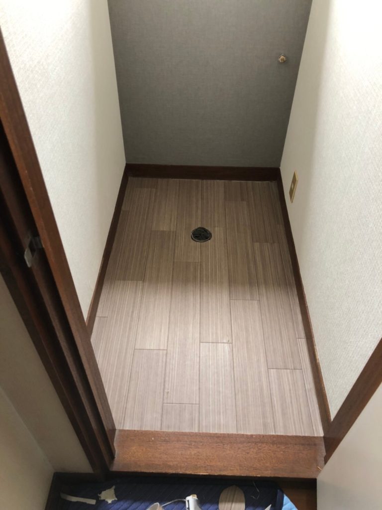トイレの工事に入る前に、玄関からトイレまでの搬入経路に養生作業を行います。