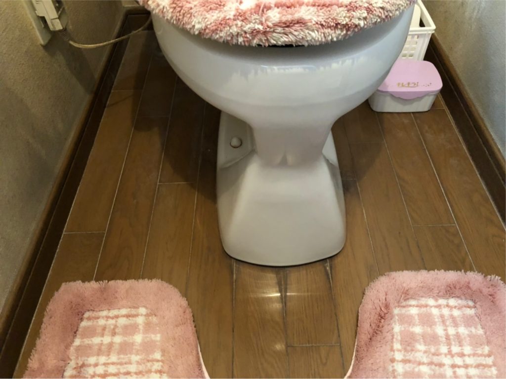 お写真だと少し分かりにくいですが、便器周りの床も水漏れの影響で表面がはげて、少し床がふかふかしていました。