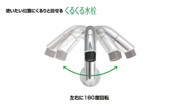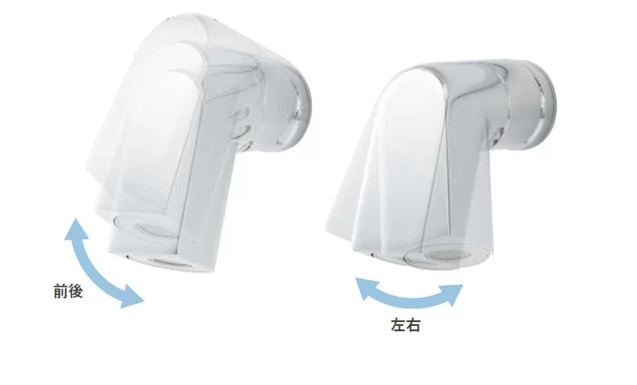 水栓の根元が動き、蛇口の向きを前後左右に自由に変えられます。