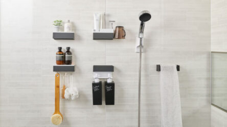 シャンプーラックやタオル掛け、子どものおもちゃまで、好きな場所に自由に収納をレイアウトできます。