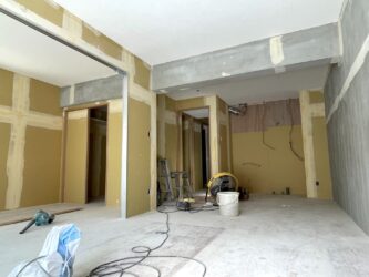 内装が中心ですが、管理規約で工事可能な曜日や時間が制限されることが多く、工期に影響します。