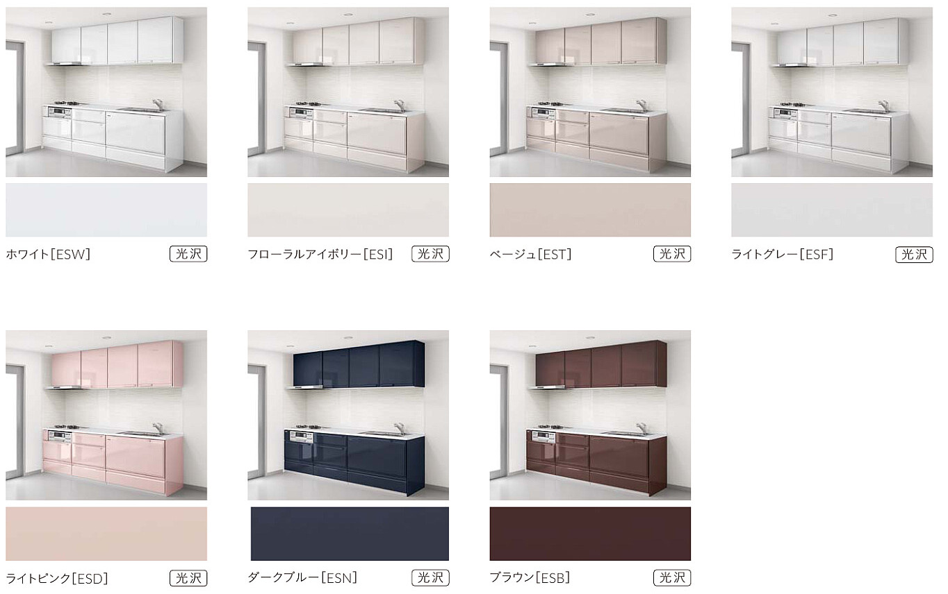すべて美しい「光沢」仕上げで、キッチンを明るく彩ります。
