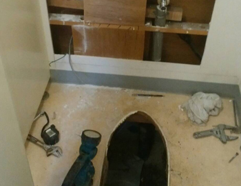 配管切断後の写真です。ここで配管の新設、下地の補強作業を行います。