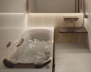 鋳物ホーロー浴槽が有名ですが、最上位シリーズの「グランスパ」では、美しいクォーツストーンカウンターと組み合わせた浴室空間を提案しています。
