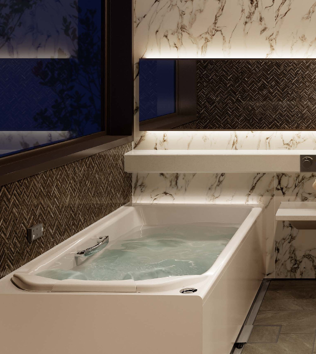 さらに、首から肩にかけてお湯で温める「肩包み湯」や、首を預けてリラックスできる「リラクシングネック」といったオプション機能も充実しており、まさに至福の入浴体験を叶えてくれます。