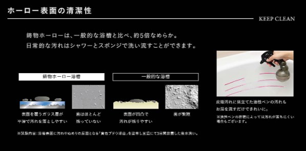 ホーロー浴槽の表面は、硬く滑らかなガラス質でコーティングされています。