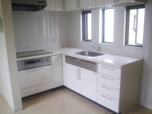 シンクとコンロがL字型に配置されるため、体の向きを90度変えるだけで作業ができ、移動距離が短くなります。